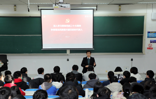 12月7日,校党委书记熊晓梅以“深入学习贯彻党的二十大精神  争做堪当民族复兴重任的时代新人”为题,走进“习近平新时代中国特色社会主义思想概论”课堂,以线上线下相结合的方式为自动化专业学生讲授专题思政课。