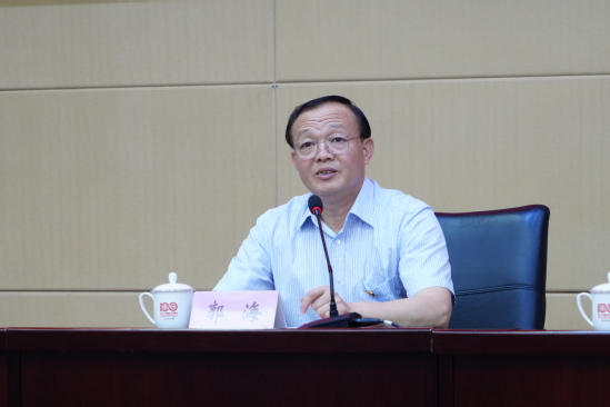 郭海表示,学习贯彻习近平新时代中国特色社会主义思想主题教育开展以来,学校党委深入贯彻落实党中央决策部署、教育部党组要求安排,牢牢把握“学思想、强党性、重实践、建新功”总要求,锚定目标任务,聚焦主题主线,把理论学习、调查研究、推动发展、检视整改、建章立制等工作贯通起来,一体推进,在第五巡回指导组的具体指导下,切实加强组织领导,分层抓好理论学习,聚焦问题精准调研,以学促干推动发展,真抓实改彰显成果,有力推动主题教育取得积极成效,广大党员、干部不断提高政治站位,深化了对习近平新时代中国特色社会主义思想的理解和转化运用,党的创新理论学习得到不断深化;拥护“两个确立”、践行“两个维护”的思想自觉和行动自觉持续增强,对党忠诚思想根基得到有力夯实;以三年行动方案为牵引奋力推动一流大学建设取得新突破,师生共谋发展合力得到广泛凝聚;以师生需求为导向,积极推进“一号通”工程建设,着力破解“报销繁”问题,师生急难愁盼问题得到积极破解;不断强化纪律意识、规矩意识,求真务实、团结奋斗的工作作风实现进一步涵育提升,廉洁自律思想防线得到持续筑牢。