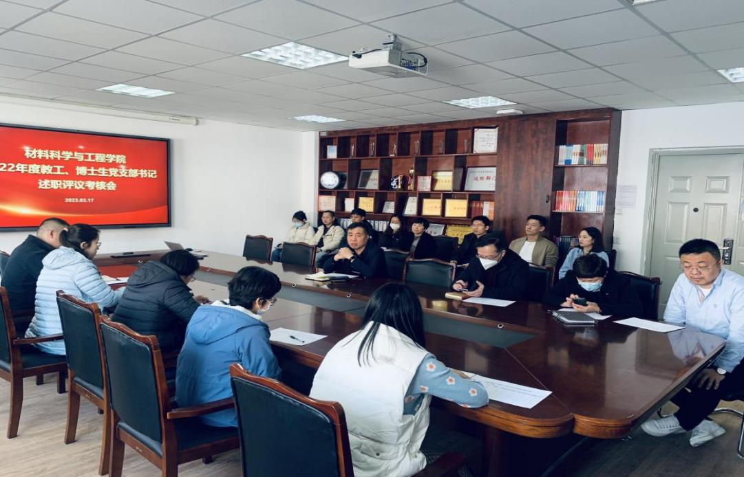 3月17日,材料科学与工程学院组织开展学院教工、博士生党支部书记2022 年度述职评议考核工作。学院党委书记张玉宝,党委副书记、纪委书记徐大可,学院党委副书记、副院长(兼)贺翔,各教工和博士生党支部书记(委员)参加会议。