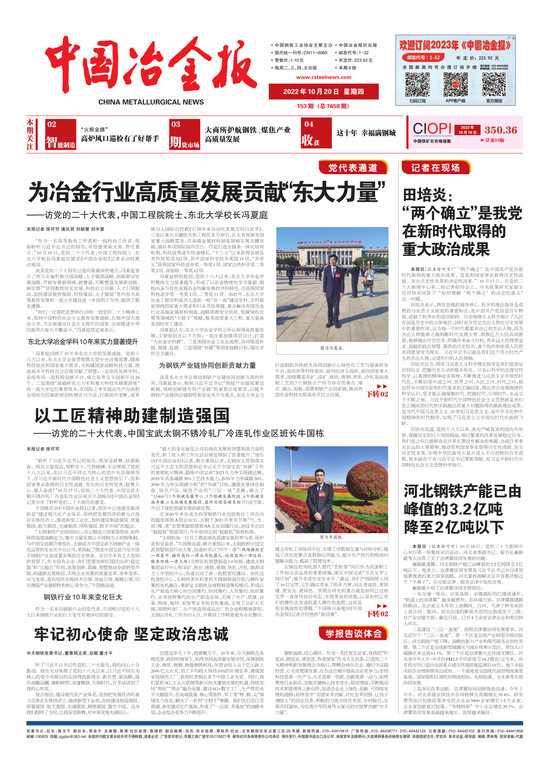 新闻来源 中国冶金报 2022年10月20日01版02版